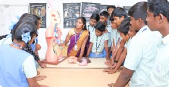 A modern integrated lab for Physics, Chemistry, and Biology, equipped with the latest tools. From Class VI onward, students conduct group experiments under teacher supervision, strengthening their fundamentals and conceptual understanding.